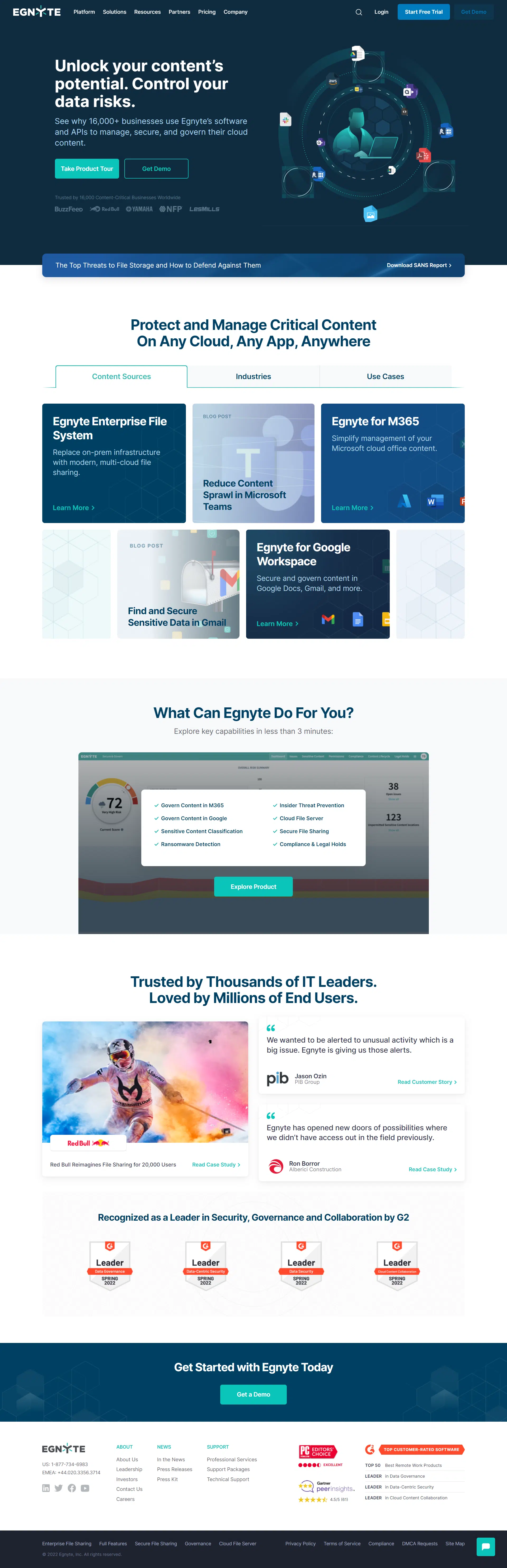Egnyte’s software and APIs manage, secure, and govern the cloud content.