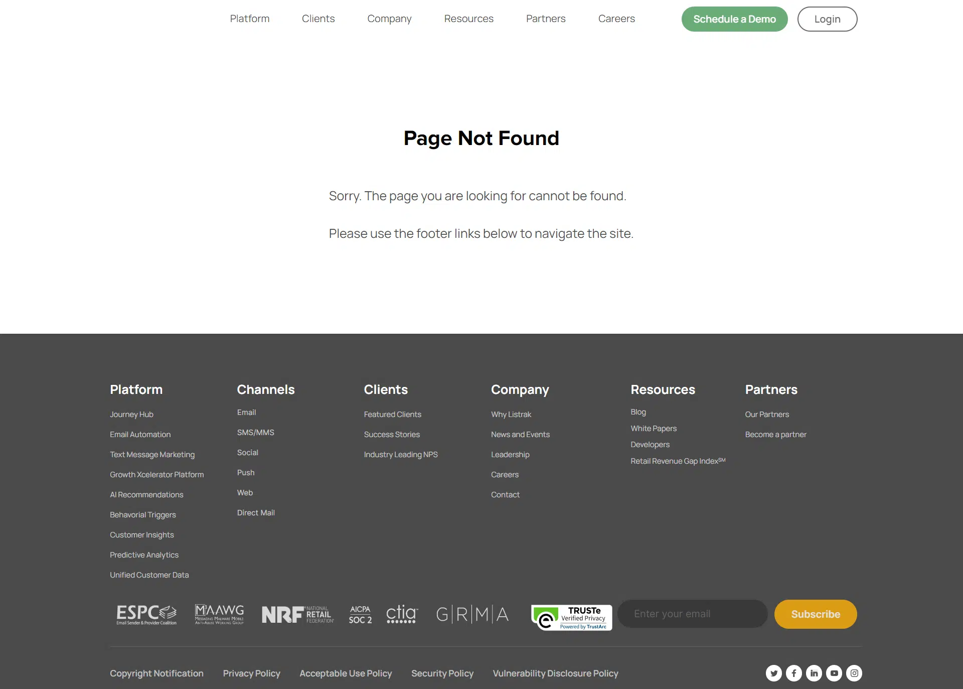 Listrak 404 Page Not Found